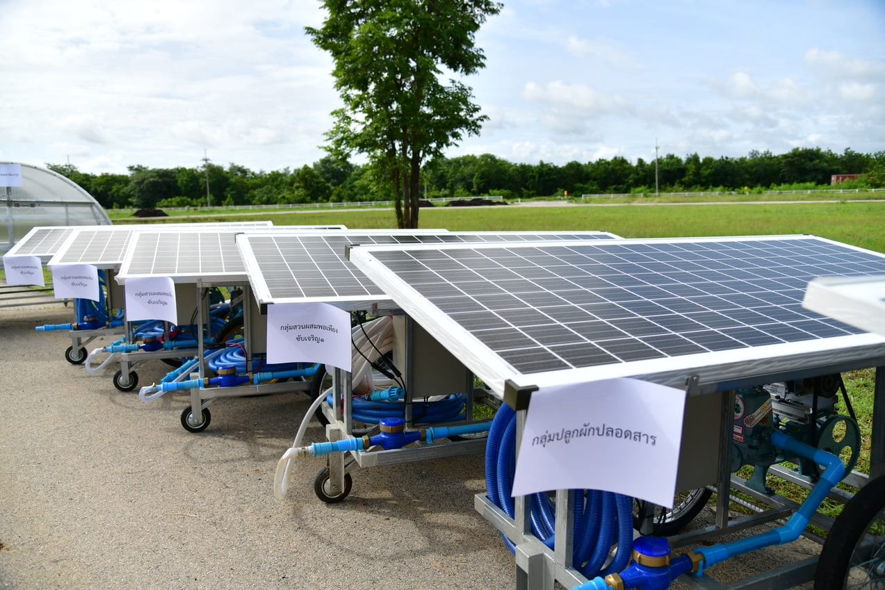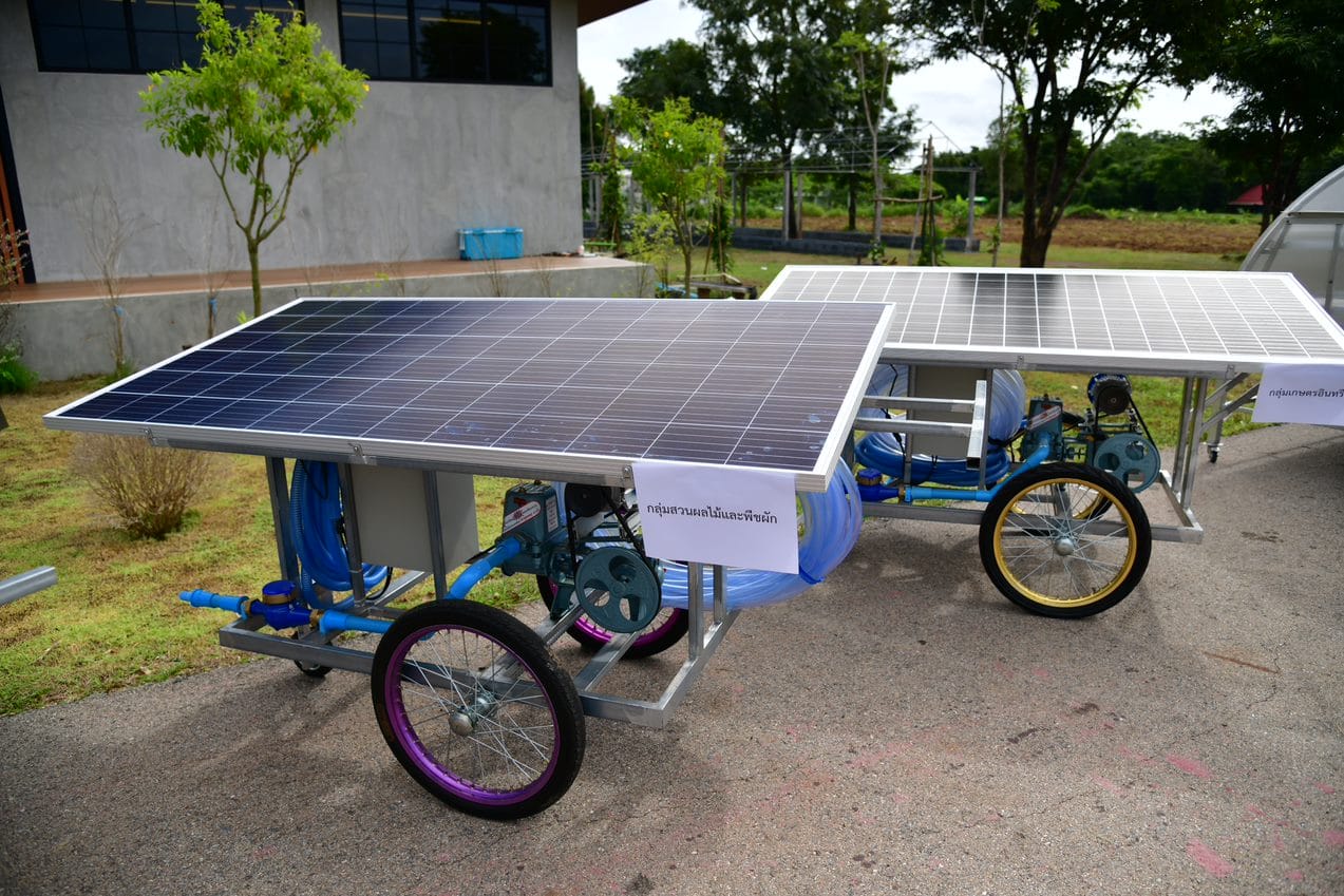 การส่งมอบเทคโนโลยีพลังงานทดแทนเพื่อชุมชน รถเข็นสูบน้ำพลังงานแสงอาทิตย์ ภายใต้การสนับสนุนงบประมาณจากกองทุนเพื่อส่งเสริมการอนุรักษ์พลังงาน กระทรวงพลังงาน โดยการรวมกลุ่มของเกษตรออกแบบการทำงานอาศัยการร่วมมือของเครือข่ายเพื่อให้เกิดการพัฒนาฯ และยกระดับขีดความสามารถดึงเอาศักยภาพพลังงานในพื้นที่มาใช้อย่างเกิดประโยชน์สูงสุด การทำงานแบบมีส่วนร่วมระหว่างชุมชน ภาครัฐ และเอกชน พร้อมกำหนดทิศทางและกรอบงานการสร้างนวัตกรชุมชนเพื่อตอบโจทย์การพัฒนาอย่างยั่งยืน และส่งมอบให้กลุ่มชุมชนในพื้นที่ ต.ทุ่งมหาเจริญ ต.ตาหลังใน ต.คลองหินปูน จังหวัดสระแก้ว